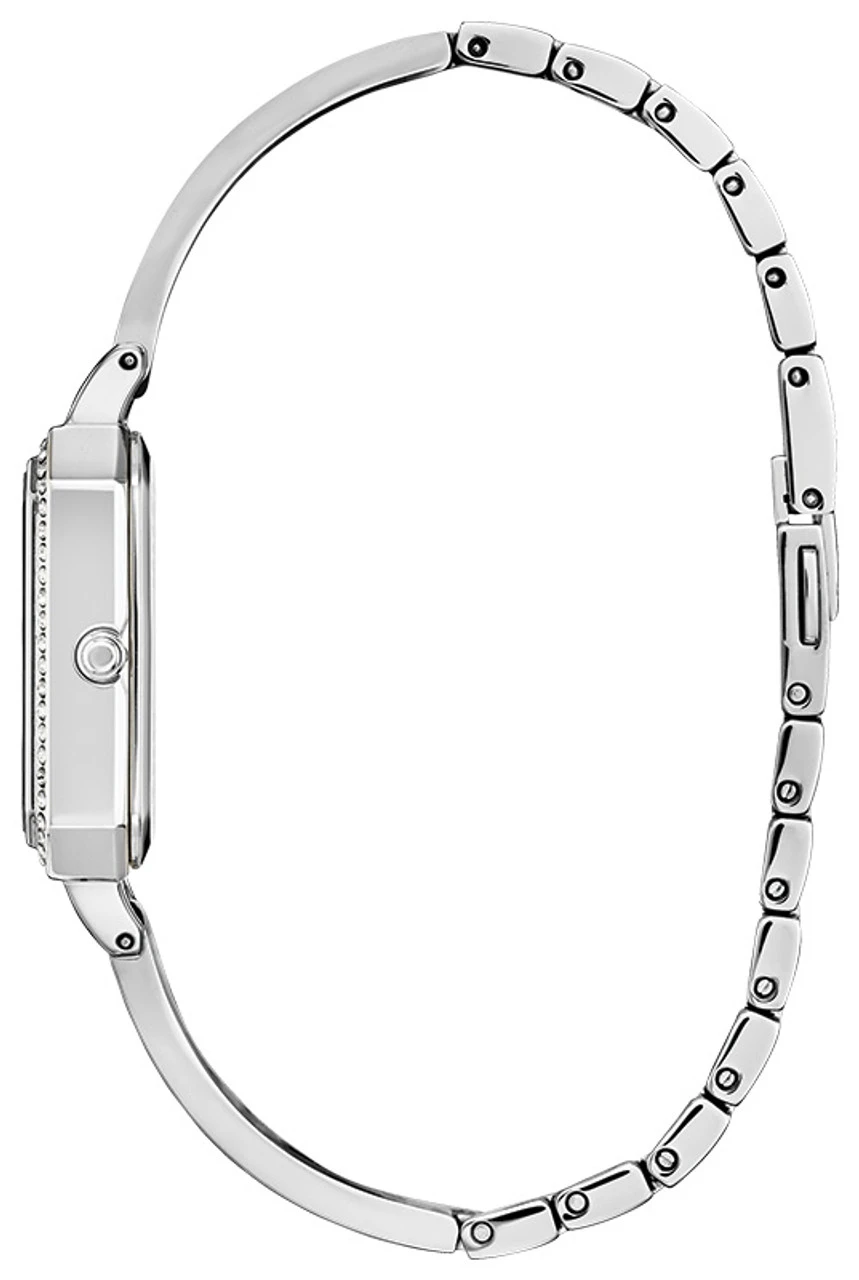 The glamourous, yet sophisticated Citizen Silhouette Crystal ladies’ timepiece is the perfect complement to any outfit. The slim, silver-tone bracelet band is surrounded by a sparkling crystal accented bezel with a white dial that exudes royalty. This three-hand women’s watch has a jewelry clasp with a push button and uses Citizen’s sustainable Eco-Drive technology to power itself by light. This iconic watch with its timeless look will turn heads at even the most extravagant events, ensuring you won’t go unnoticed.