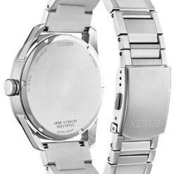Bring a new elegance to your day with this Citizen timepiece from the Classic collection. In silver-tone stainless steel, the sleek design features a blue 3-hand dial with day and date indicator, a push button fold over clasp and water resistance to 100 meters. The stylish men’s watch is the essential piece to complement your dress wardrobe while adding versatile style to your day to evening looks. Featuring our Eco-Drive technology that’s sustainably powered by any light and never needs a battery. Caliber number J800.