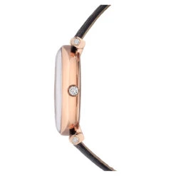 This spellbinding timepiece wonderfully captures the dazzling spirit of the Crystalline Wonder family. Crafted with a rose gold-tone finish, the 35mm case feature cleverly shaped attachments with a single clear stone in each end, along with another stone placed in the crown. Under the domed glass, the watch’s dial is beautifully embellished with Arabic numerals and approximately 1000 crystals for an astonishing effect. Swiss made and water-resistant to 50m, this wondrous timepiece is presented on a quick release Italian calf-skin leather strap in black, which is embossed with a lizard pattern. A striking choice for your everyday style, or a timeless gift for a loved one.