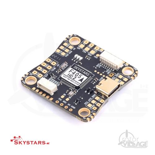 The Skystars F405 HD2 flight controller, DJI FPV compatible, mounts in 30.5mm/M3, has a BMI270 gyroscope, a 16MB blackbox and a 5V/2A & 10V/2A BEC.