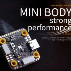 Introducing the MINI F7 HD Flight Controller from T-Motor! This advanced flight controller features the lightning-fast processing power of the High Speed F722 and can be paired with the T-Motor F45 ESC to deliver an exceptionally smooth and powerful flying experience. Despite its impressive capabilities, the MINI F7 HD Flight Controller boasts a compact size that is 41% smaller and weighs 33% less than comparable models. It also includes a dual BEC and is plug and play compatible with DJI HD VTX, making setup a breeze. With the MINI F7 HD Flight Controller from T-Motor, you can enjoy top-of-the-line performance and reliability in a compact and easy-to-use package.